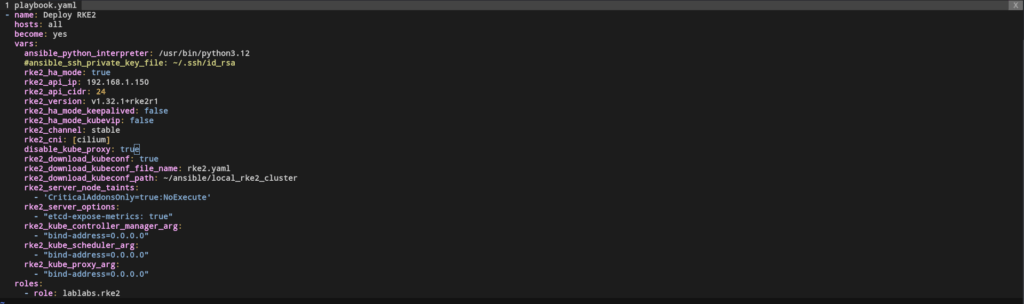 • Déploiement du service rke2 par playbook ansible et un fichier d’inventaire