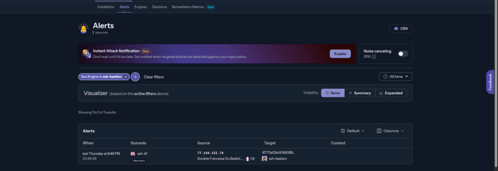 • Installation d’un IPS/IDS permettant d’analyser le comportement des utilisateurs + Mise en place du bouncer firewall pour le blocage d’ip en fonction de la détection des comportements suspect